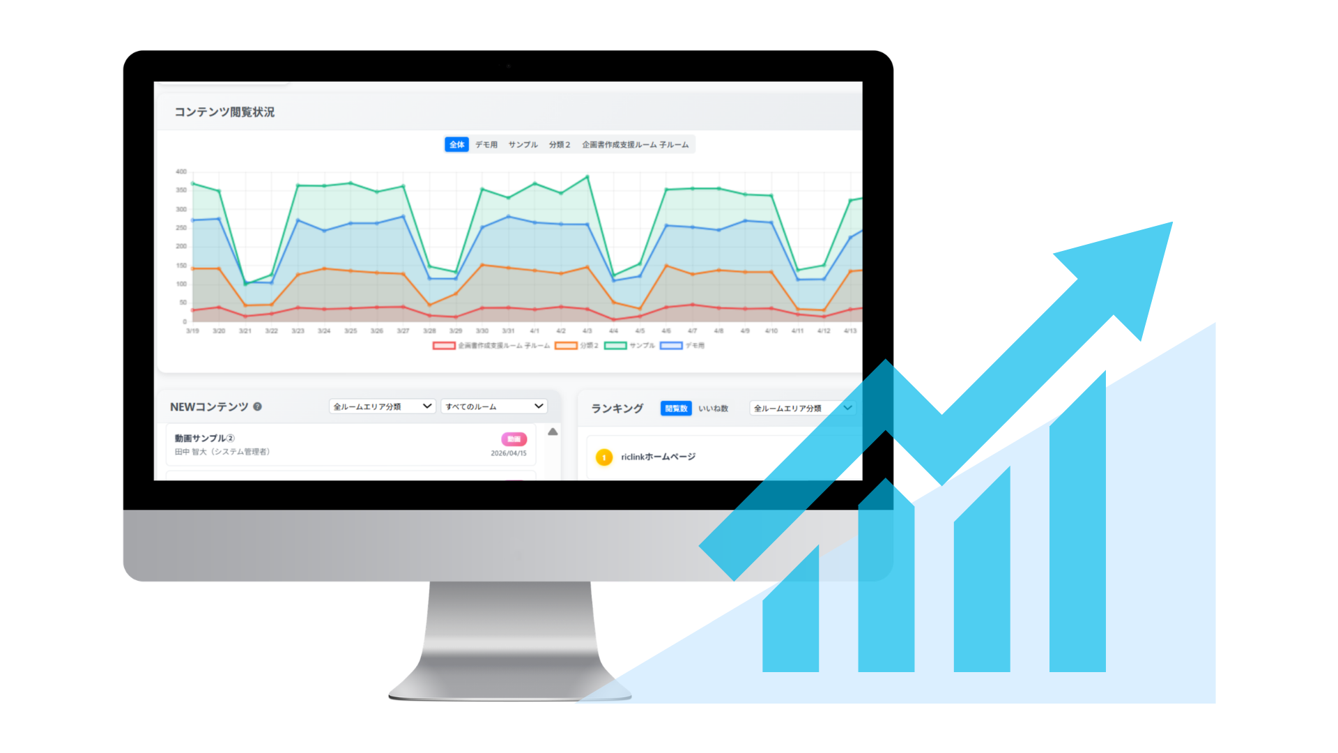 ダッシュボード機能により社内・社外のコンテンツ閲覧・利用状況を可視化できます。データを活用し、より確かなコンテンツ戦略の改善が可能となります。